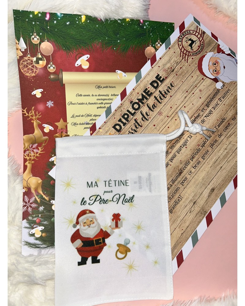 Aidez votre enfant à grandir avec ce pochon spécial tétine à remettre au Père Noël. Un rituel symbolique de Noël avec lettre personnalisable et diplôme pour féliciter l’enfant.