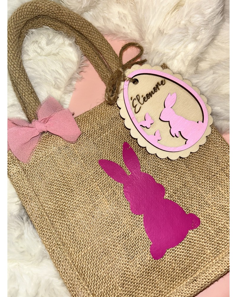 Craquez pour ce mini sac de Pâques personnalisé, idéal pour une chasse aux œufs réussie ! Avec sa jolie étiquette en bois gravée au prénom de l’enfant, il devient un souvenir unique à réutiliser chaque année.
