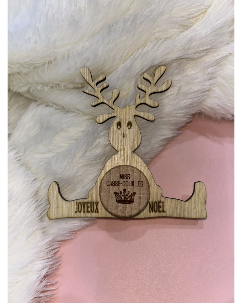 Support en bois pour bouchon de bouteille – Renne ou bonhomme de neige – Gravé “Joyeux Noël”