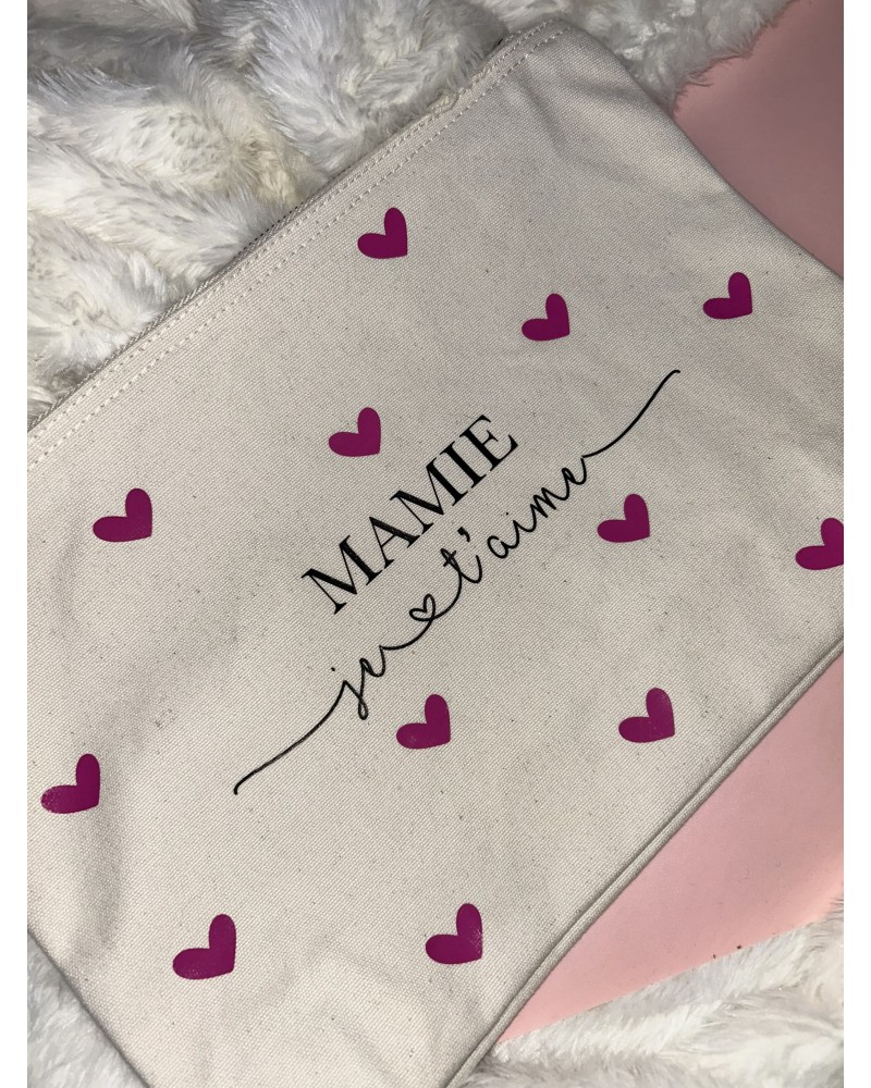 Trousse « Mamie je t’aime » avec cœur rose – Taille L, pratique et pleine d’amour