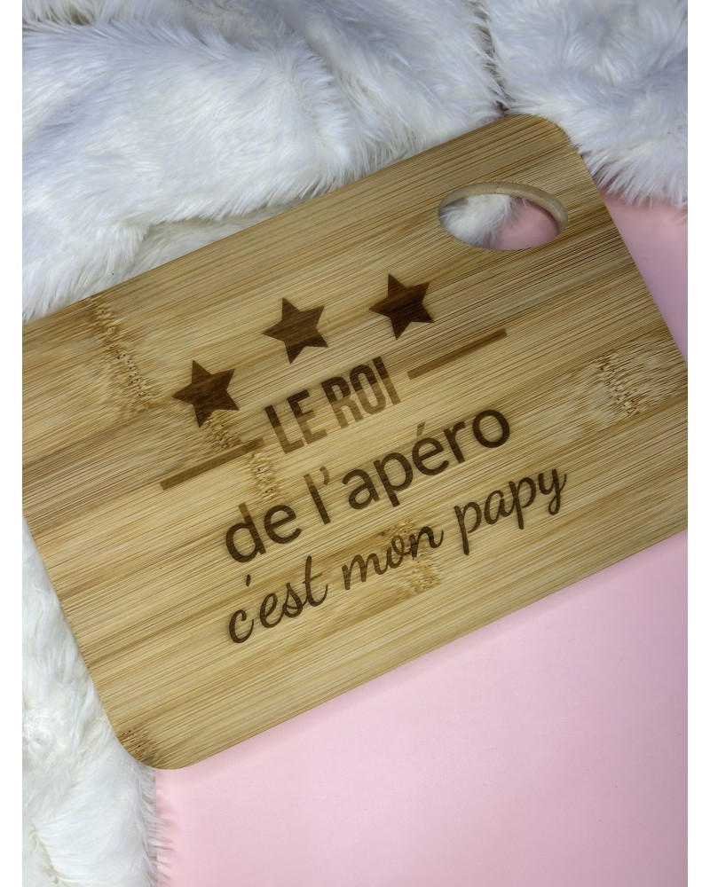 Planche apéro en bois de bambou 20 × 15 cm « Le roi de l’apéro, c’est mon papy »